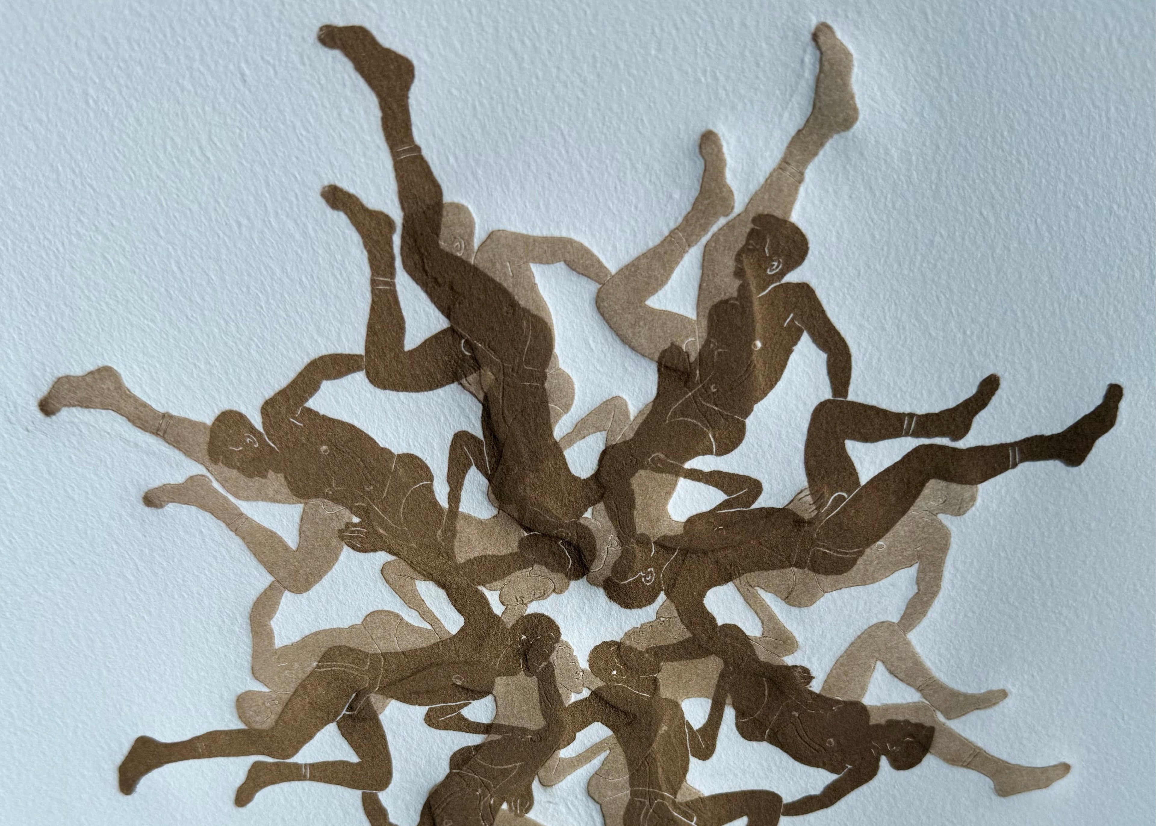 Bound with Silver Tassels. Red Circle. 8x10 Art in 11x14 Mat.