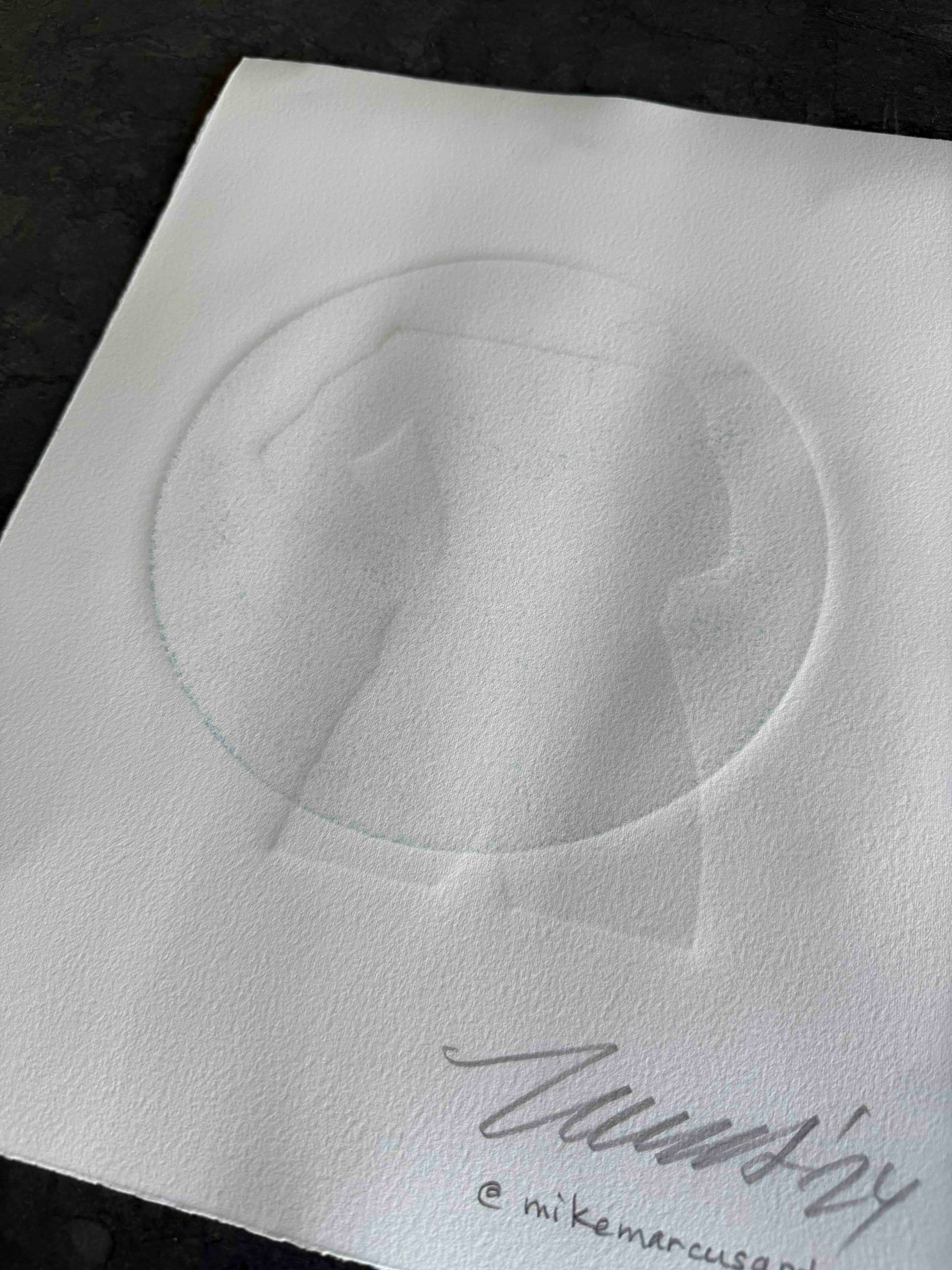 Each art piece is hand-printed on an analog printing press with oil-based inks on archival paper. The circle is printed first with a “rainbow roll” on monotype plate. The linocut figures are then printed as an overlay to the circle. The process results in a beautiful embossment of both the figure, and the circle - I’ve included an image in the gallery as a visual reference.