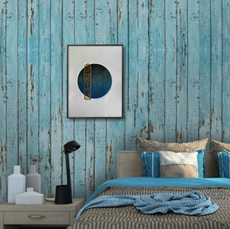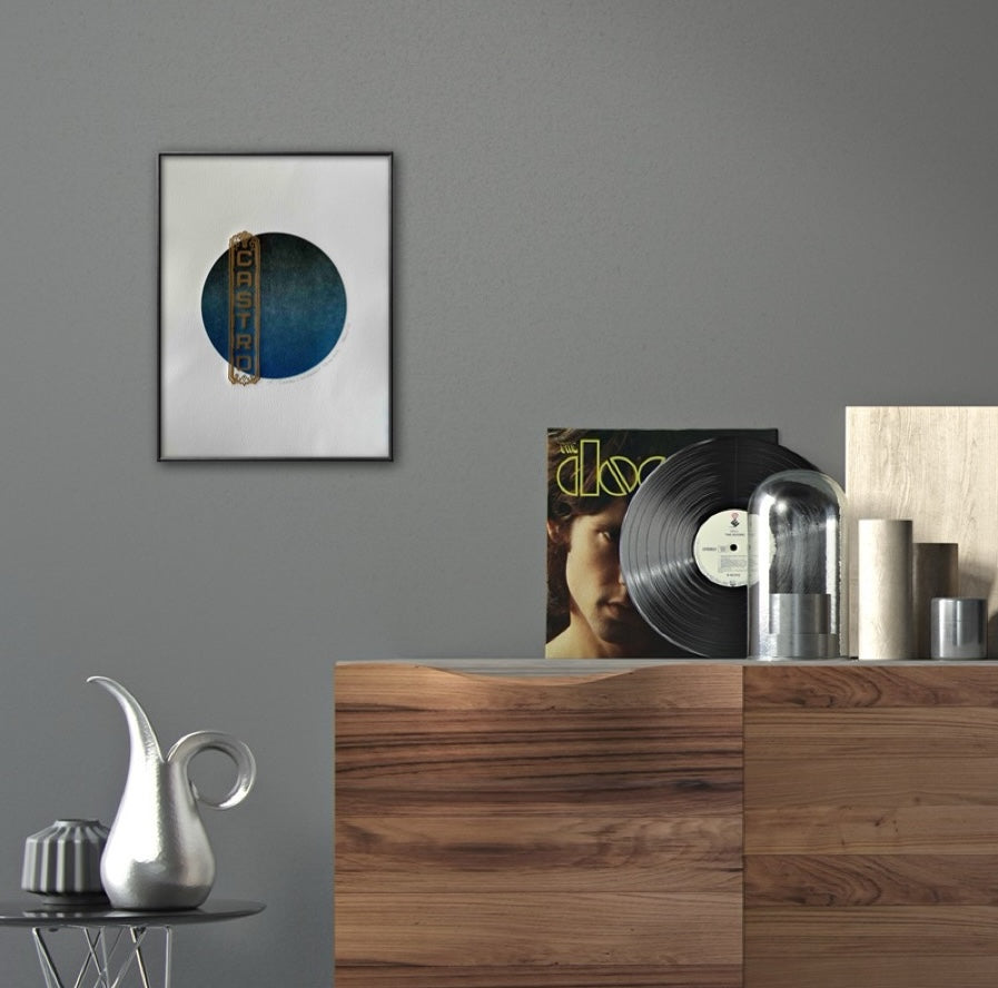 “Castro - Midnight Glow No. 2” Gold linocut sign on Cobalt-Navy-Black Ombre circle. One-of-a-kind piece, signed as "1/1" — ‘one of one’.