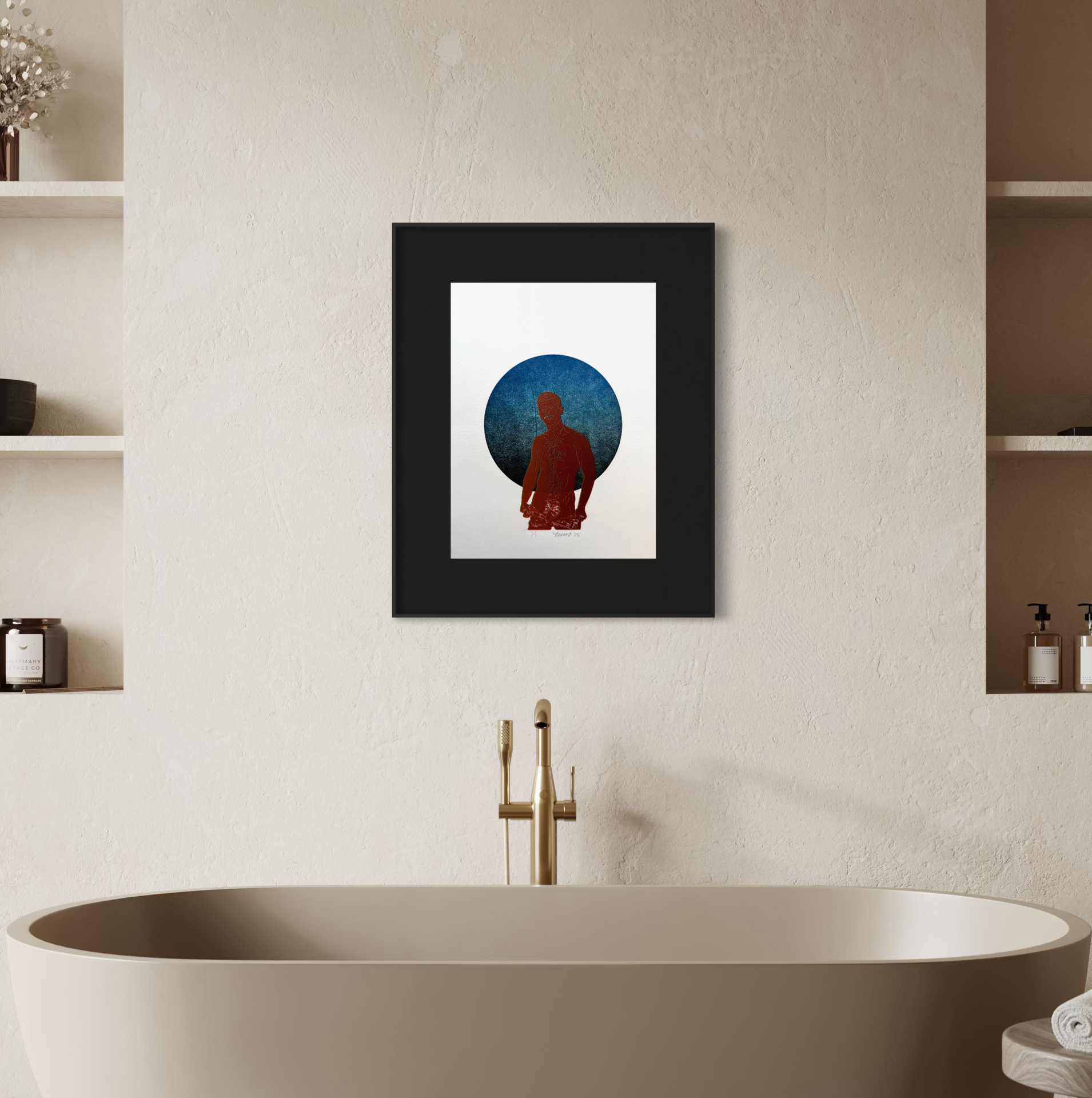 “Daddy’s Home”. Red Figure. Gold Outline. 11x15 Art. Unmatted.