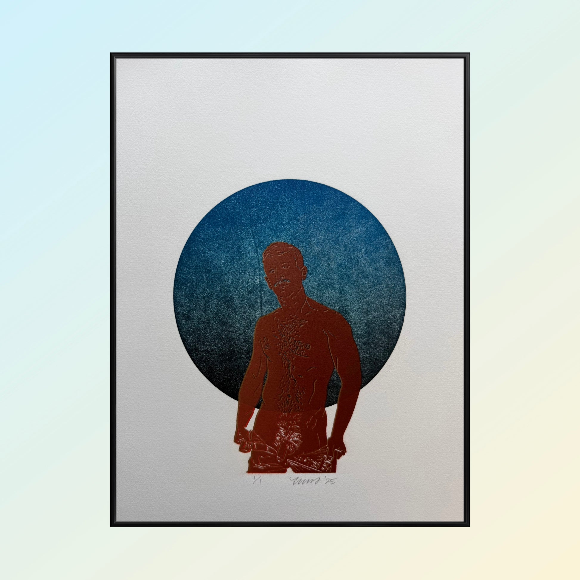 One-of-a-Kind. 3-Layer Linocut & Monotype. "Loose Print" - Un-matted, un-framed.