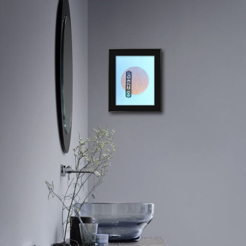 Blue Castro Sign. Orange/Red Circle. 8x10 Art in 11x14 Mat.