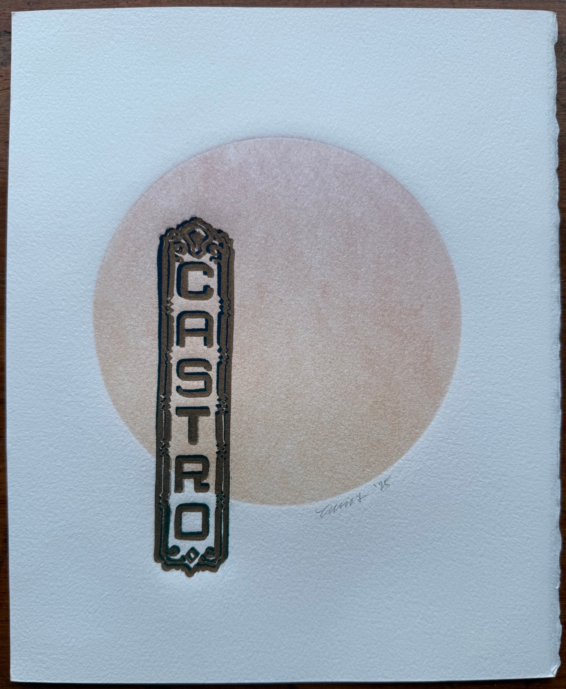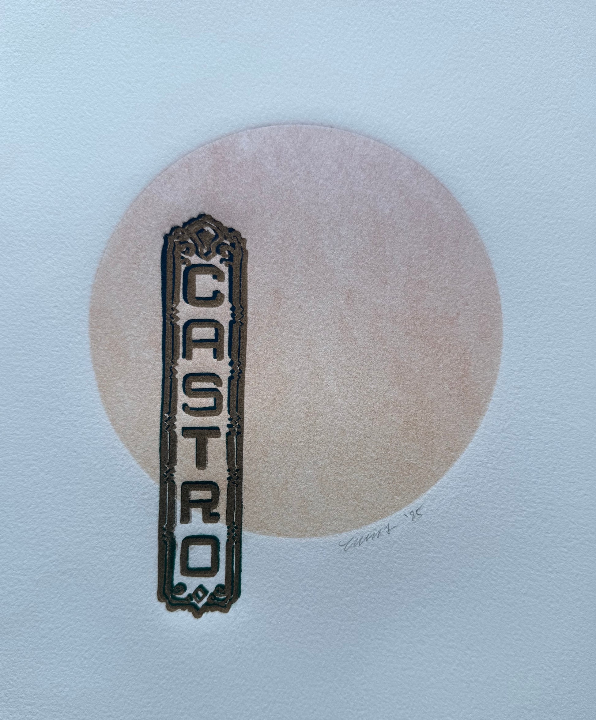 Gold/Teal Castro Sign. Orange/Red Circle. 8x10 Art in 11x14 Mat.