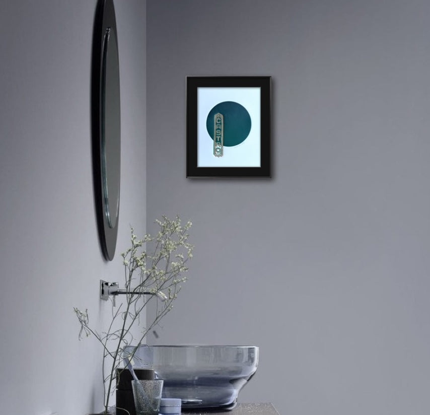 Gold and Teal Castro Sign on Dark Teal/Navy Ombre Circle. Matted (Black).