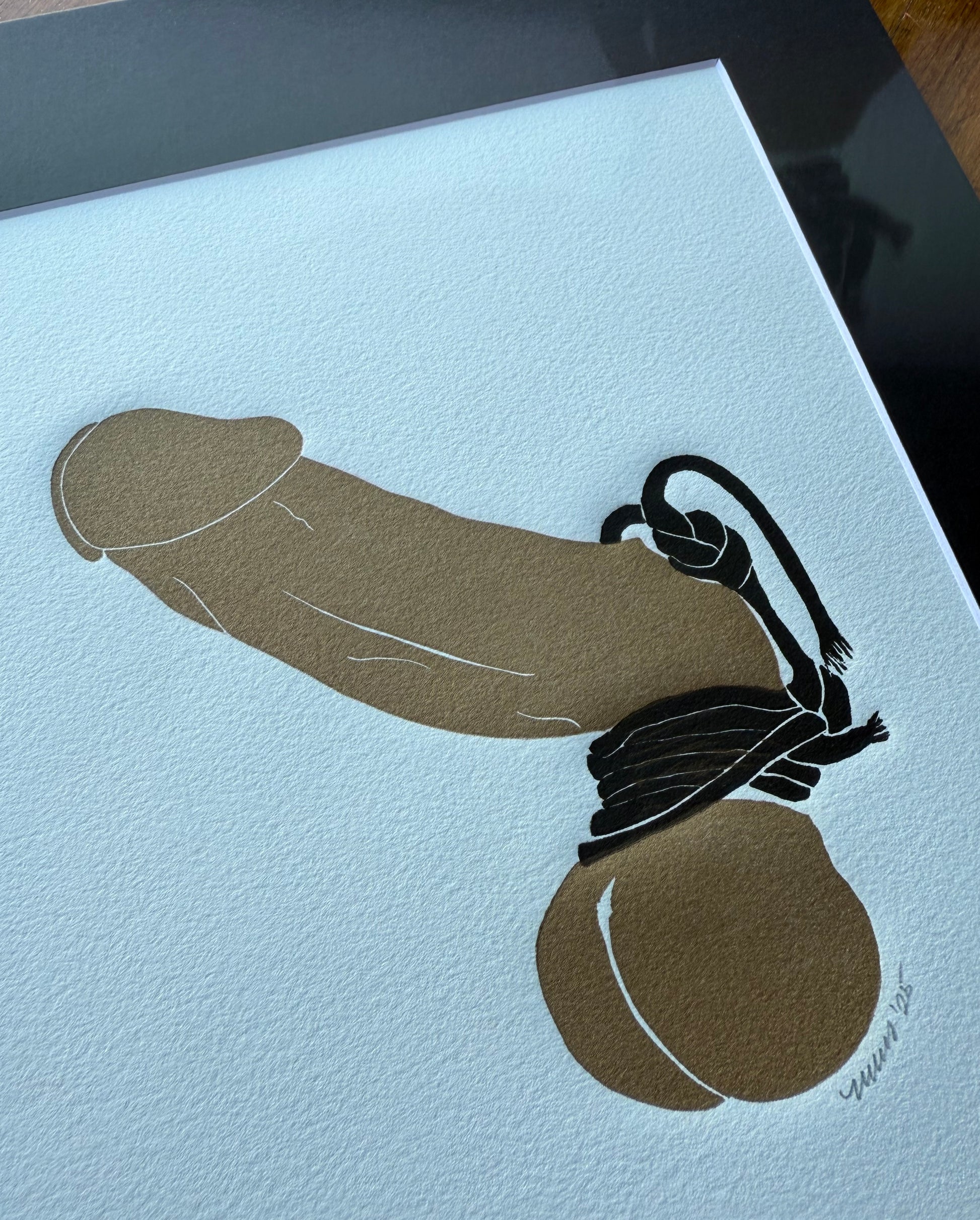 "Golden & Bound'". Gold Cock. Black Tassel. White Paper.