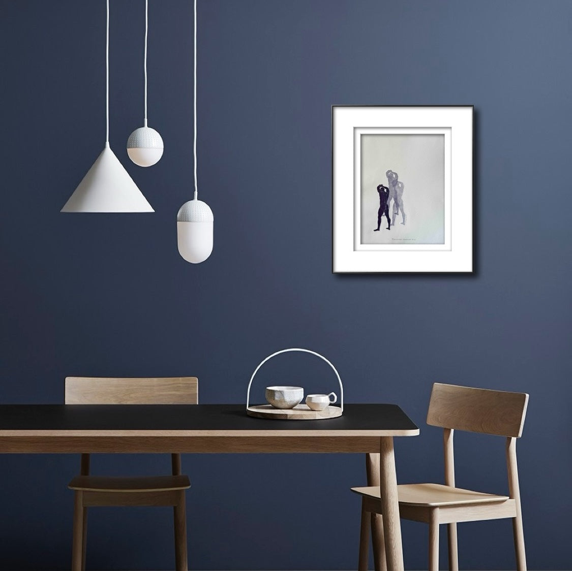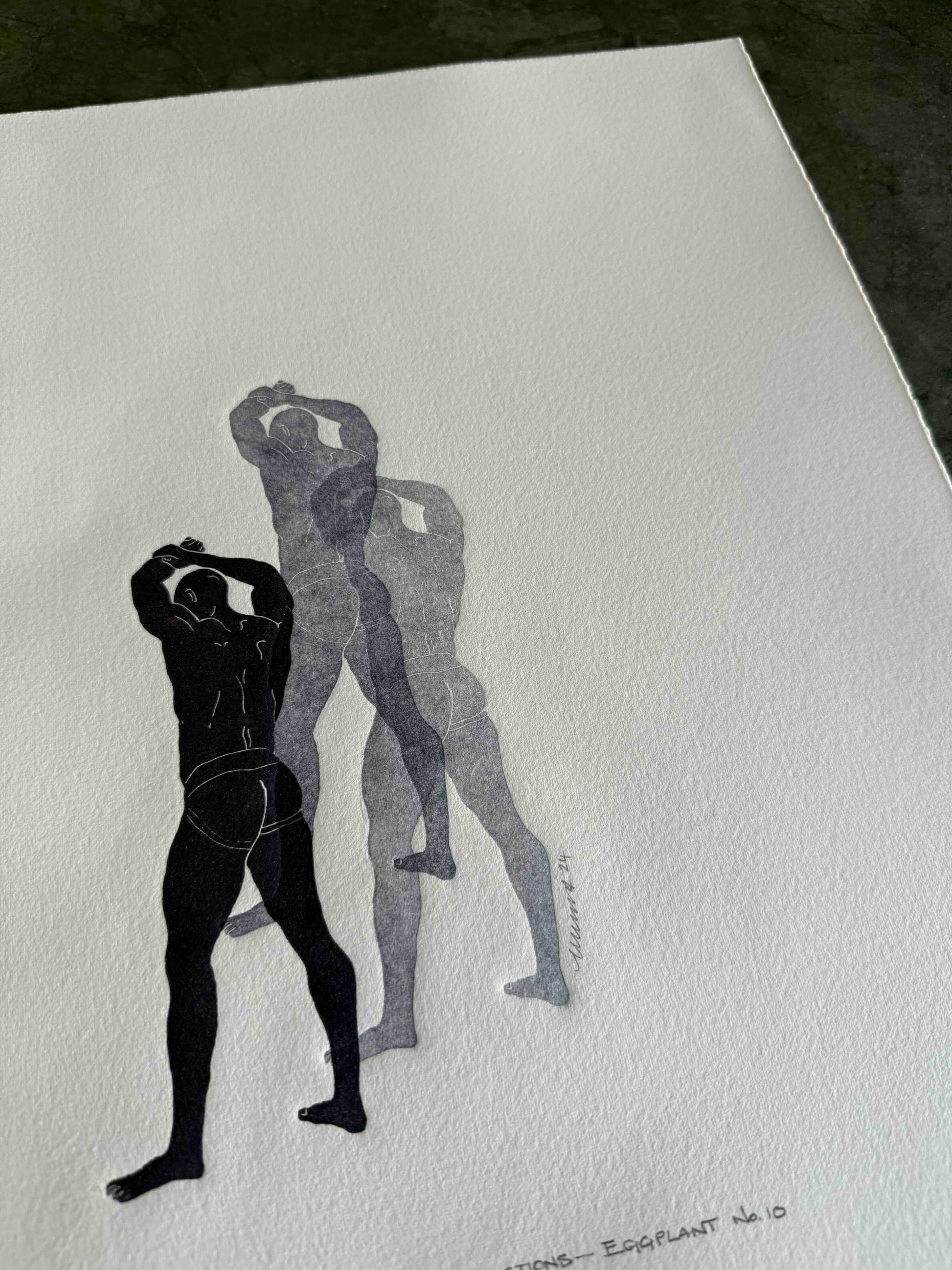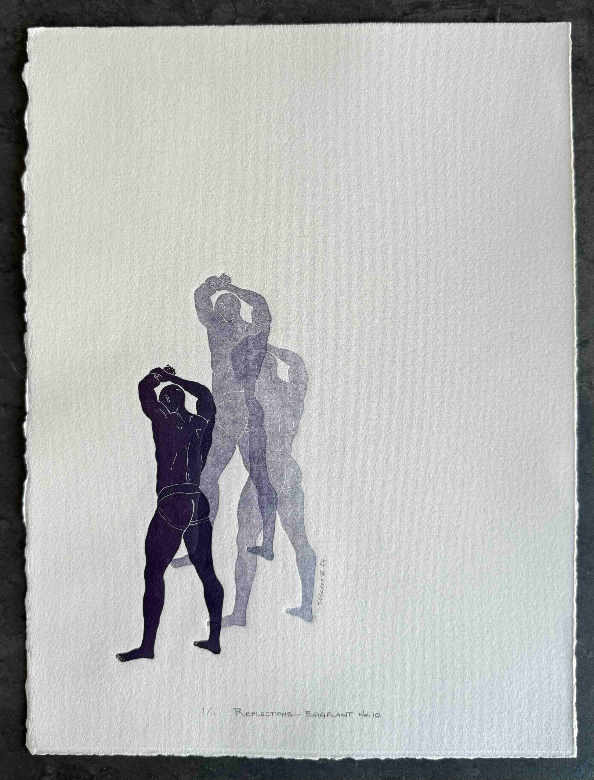 Eggplant Purple Linocut Figures. One-of-a-kind piece, signed as "1/1" — ‘one of one’.