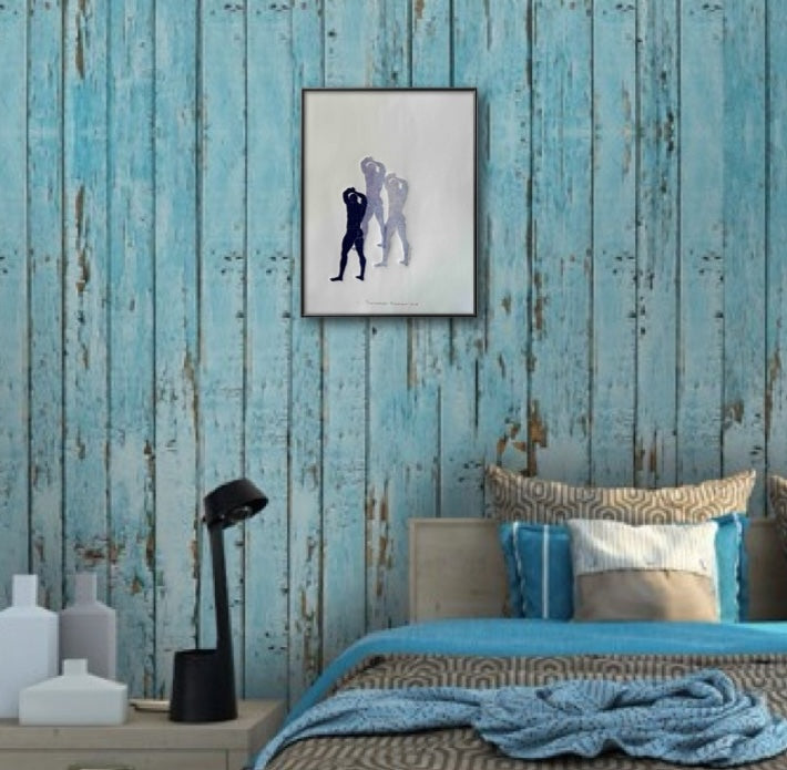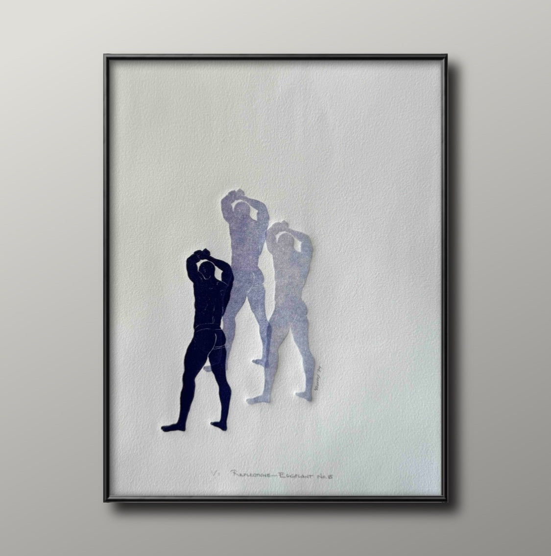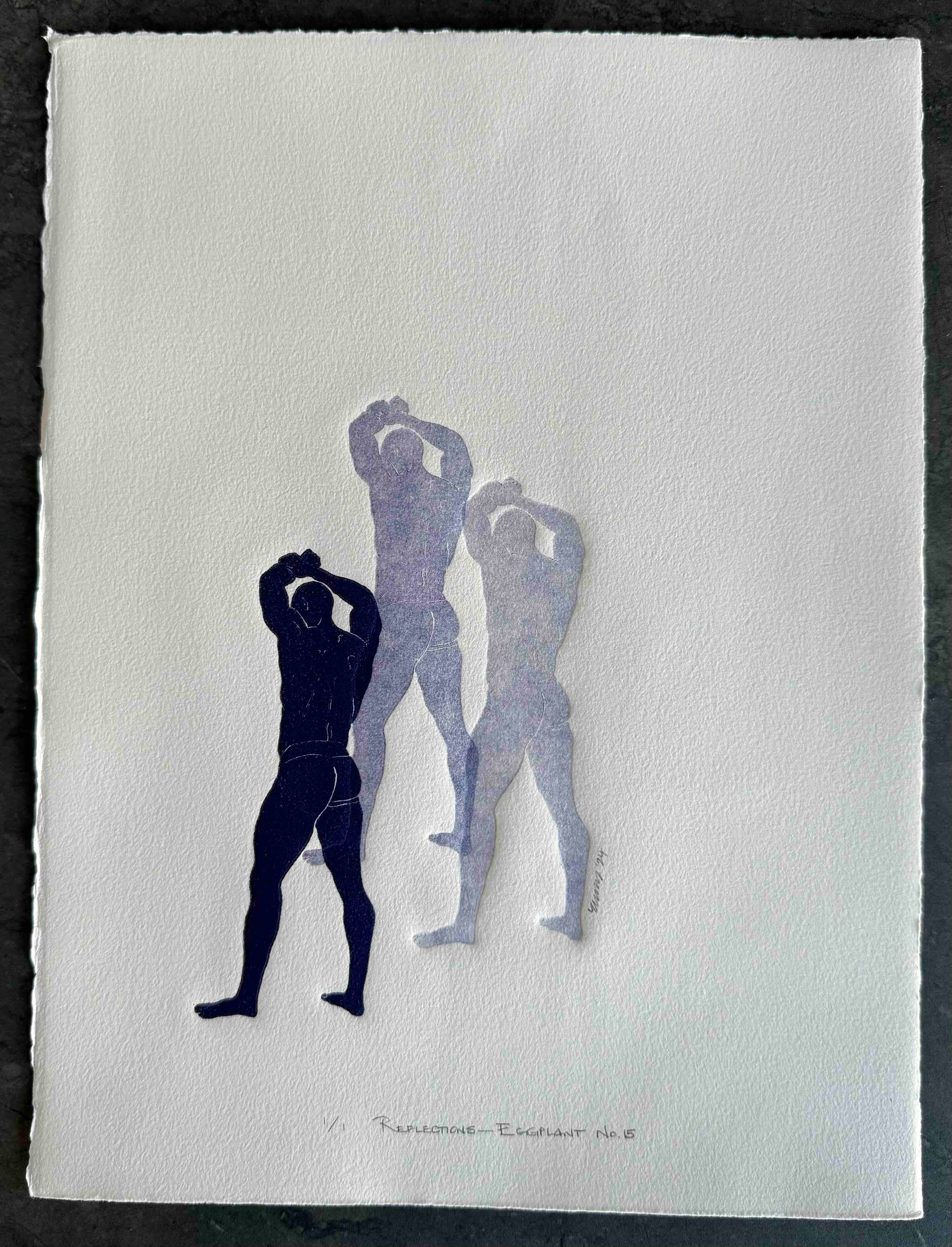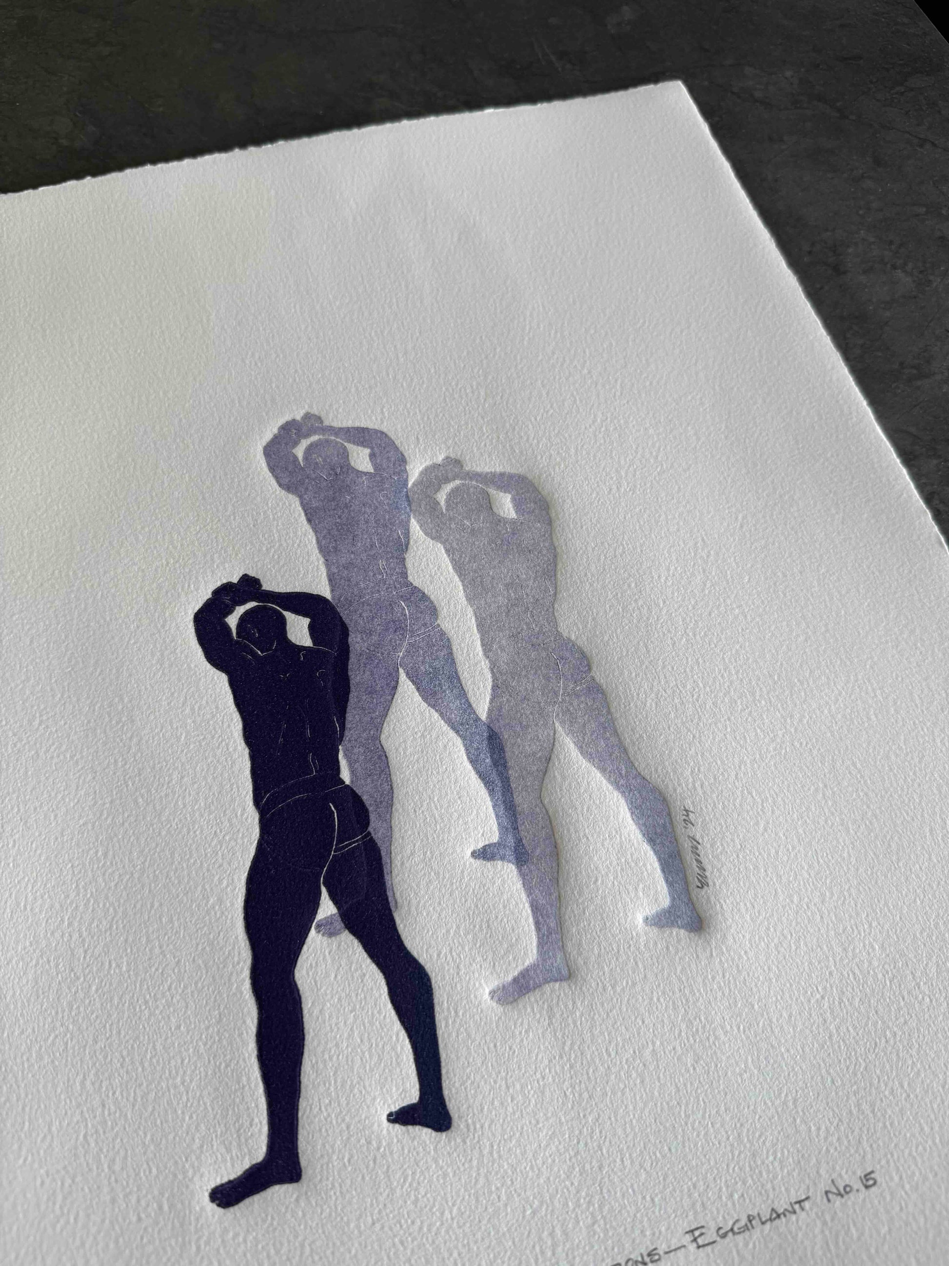 Eggplant Purple Linocut Figures. One-of-a-kind piece, signed as "1/1" — ‘one of one’.