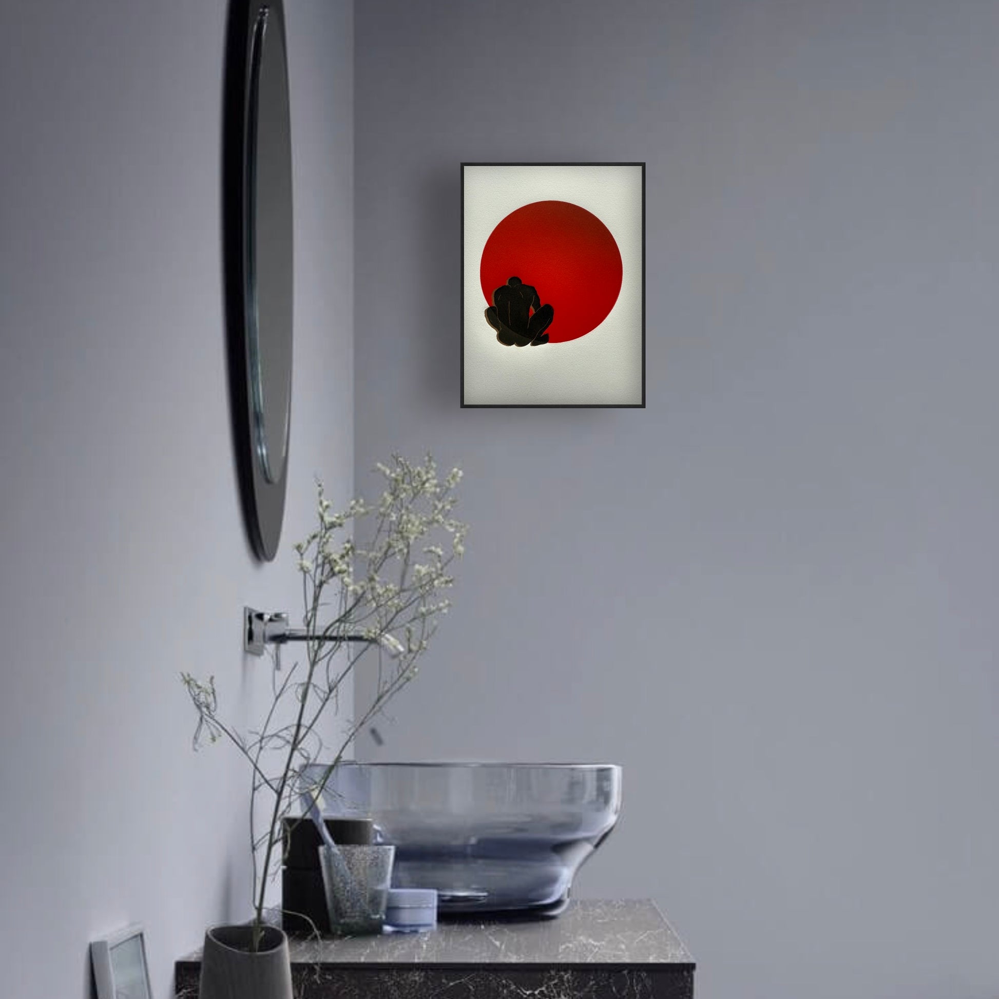 "Heat of Submission: Gold Rim". Gold Shadow. Red Ombre Circle.