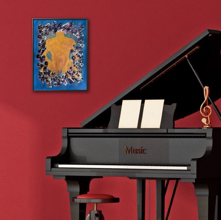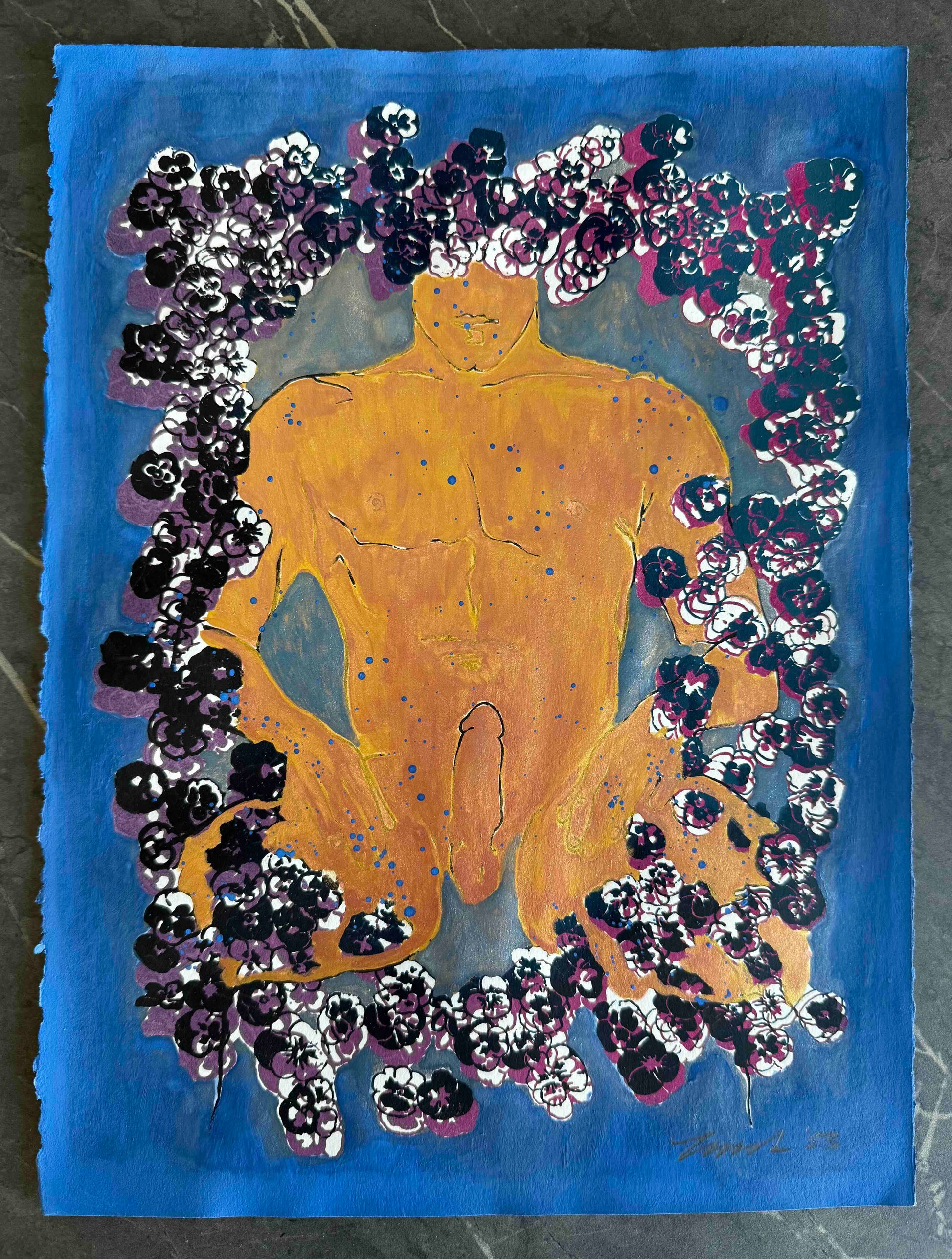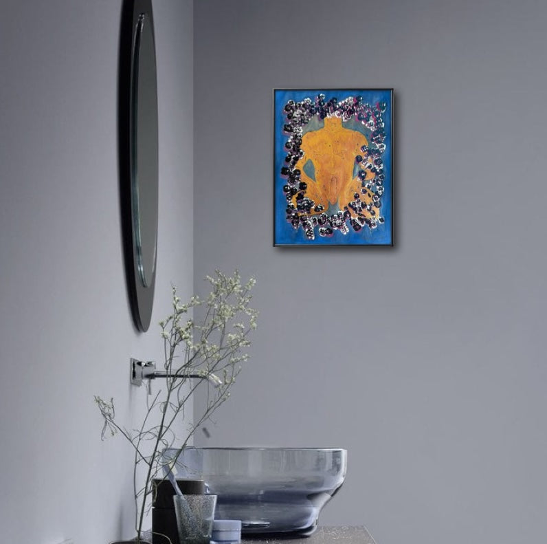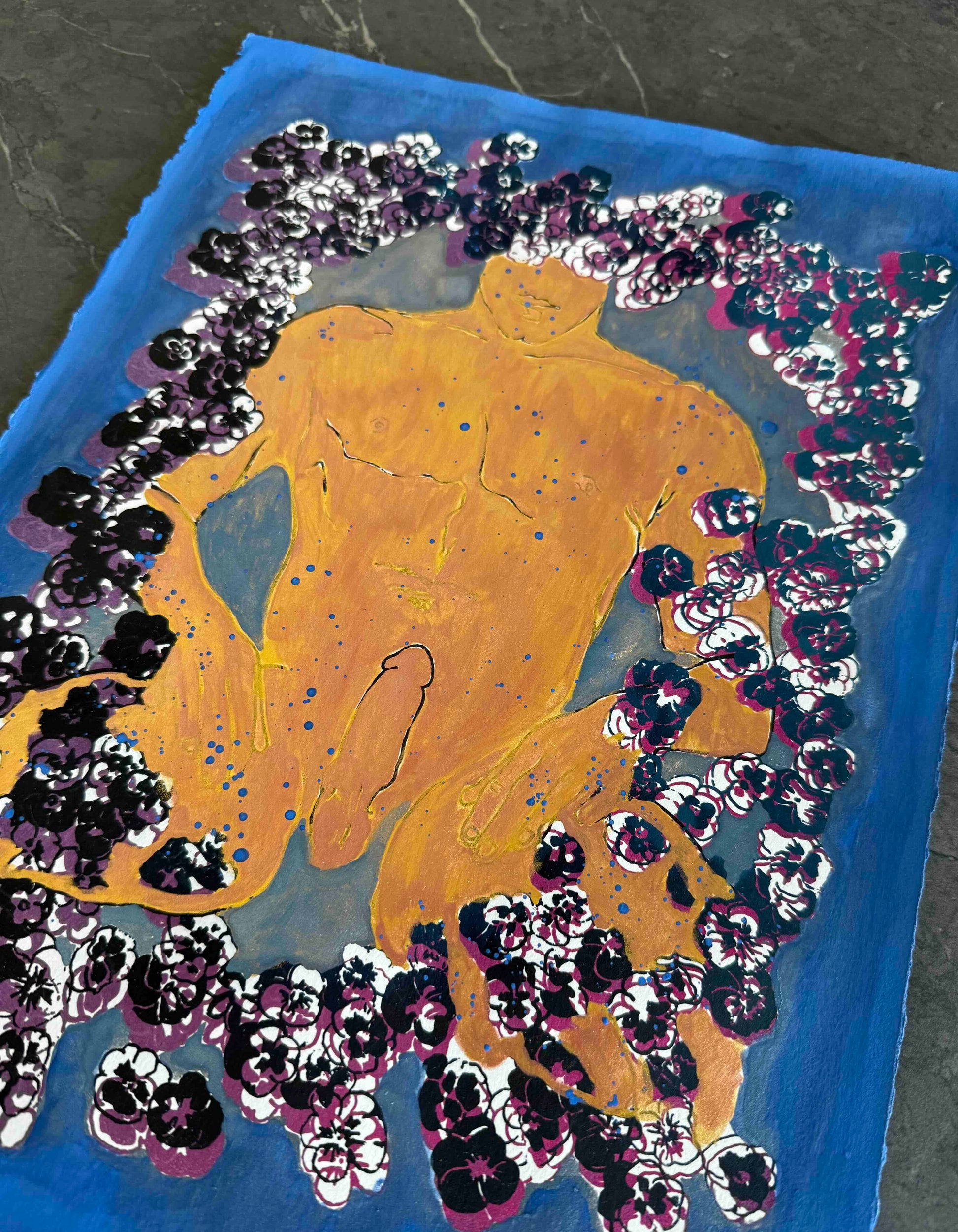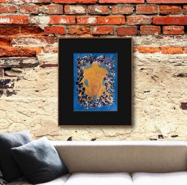 Original Serigraph & Gouache Painting with Gold Mica Figure. One-of-a-kind piece, signed on the back as "1/1" — ‘one of one’.